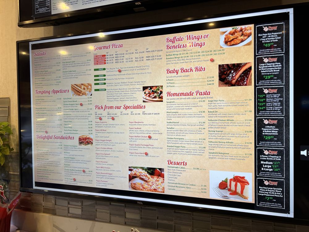 Papa Pizza Pie Menu (Update 2025)